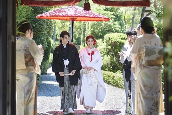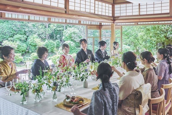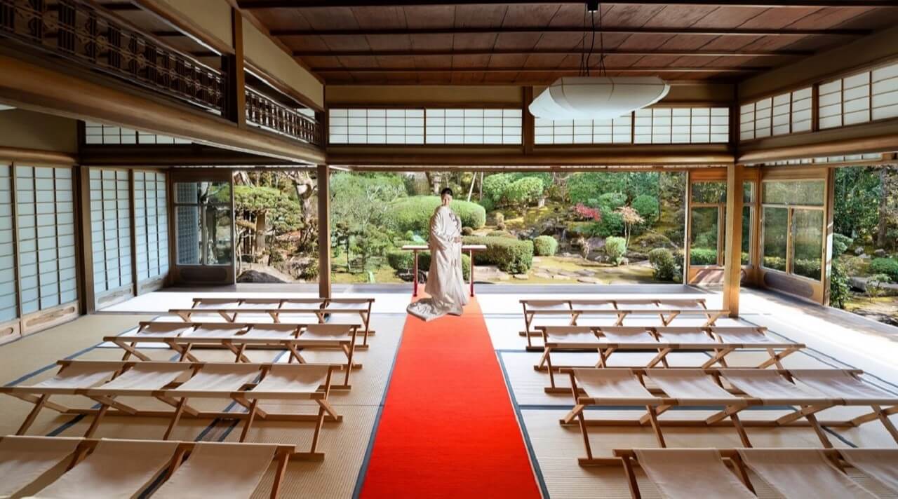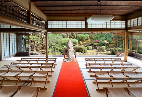 四季折々に表情を変える日本庭園を背景に行う挙式は、